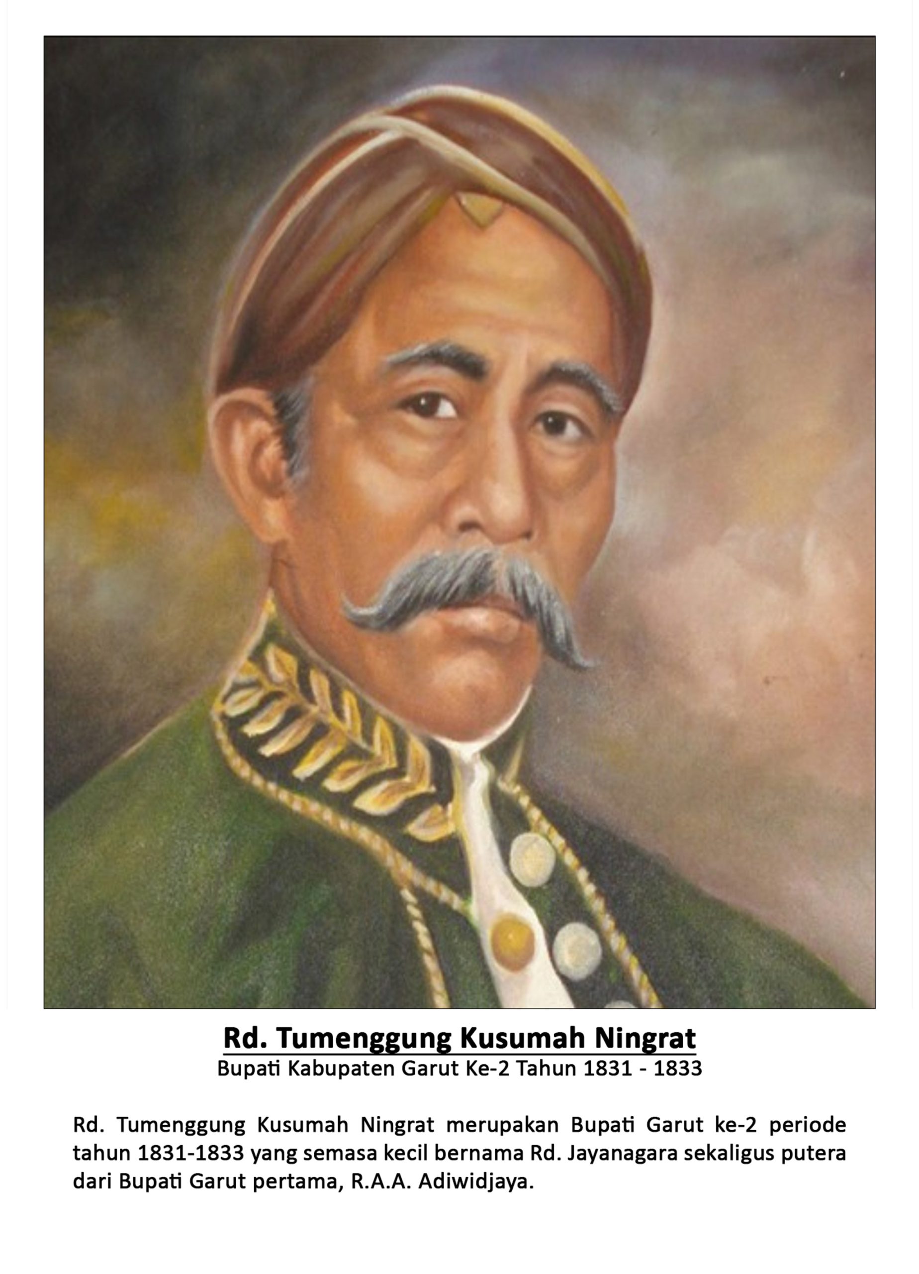 | Rd. Tumenggung Kusumah Ningrat Bupati Kabupaten Garut Ke-2 Tahun 1831-1833 Rd. Tumenggung Kusumah Ningrat merupakan Bupati Kabupaten Garut ke-2 periode 1831-1833 yang semasa kecil bernama Rd. Jayanagara sekaligus putera dari Bupati Garut pertama (R.A.A. Adiwijaya) |